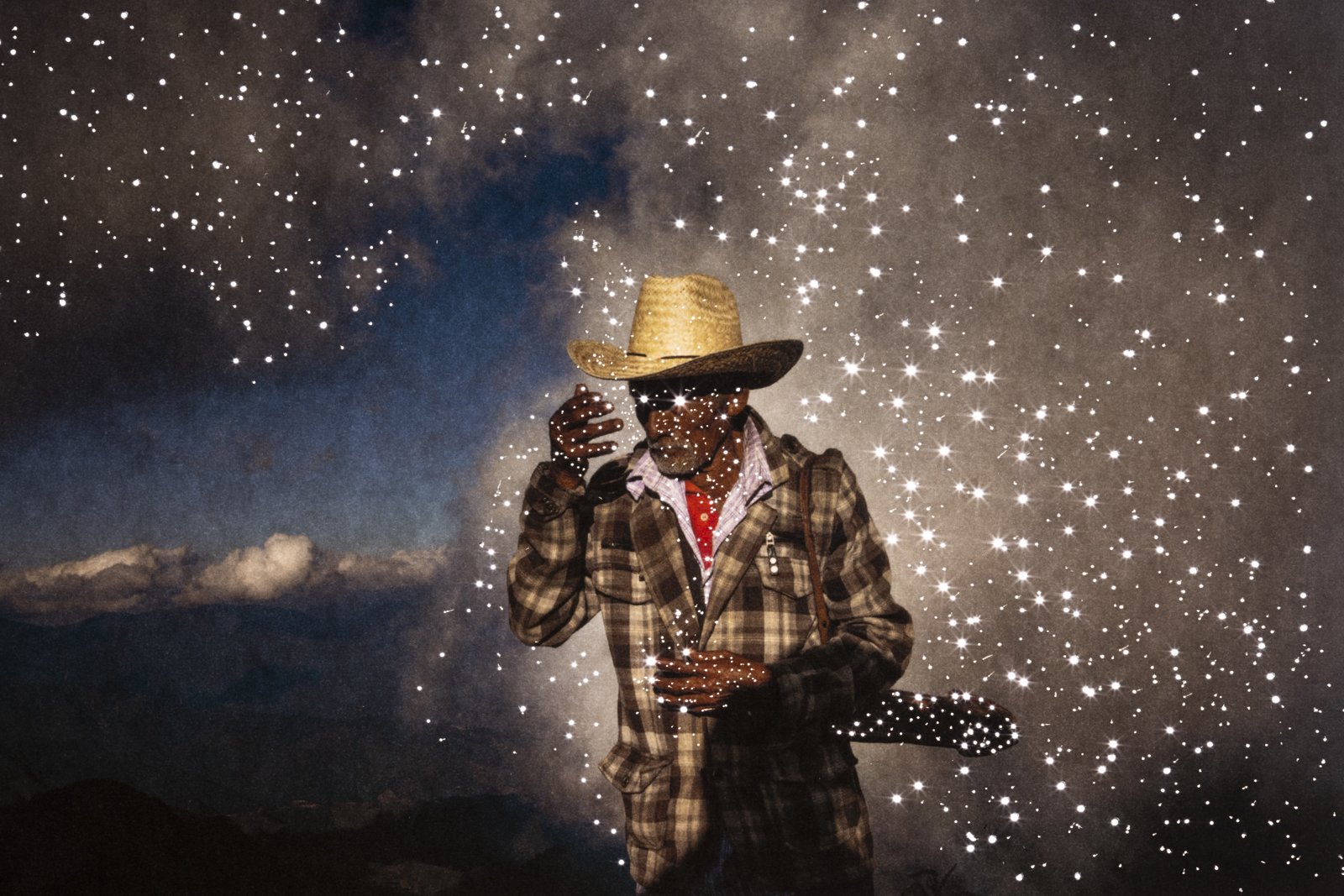 Between 2019 to 2023, Martínez began a series of interventions into his photographs, piercing holes through the prints and then backlighting them. Bright rays emanate through the pictures in free flowing shapes, throwing light against a dark backdrop. In this process the light metamorphosizes with the scenes depicted and conjures an alchemy where something restorative, tentatively optimistic and resilient occurs.