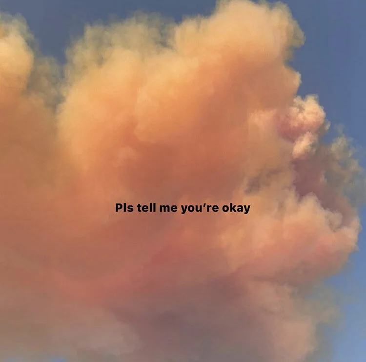 I retreat to Instagram, browsing through posts and stories. A photo by Myriam Boulos was circulating, replicated and repeated, reposted, reshared, the same beautiful cloud my father sent me a picture of, but this one with text overlaid: “Pls tell me you’re okay.”