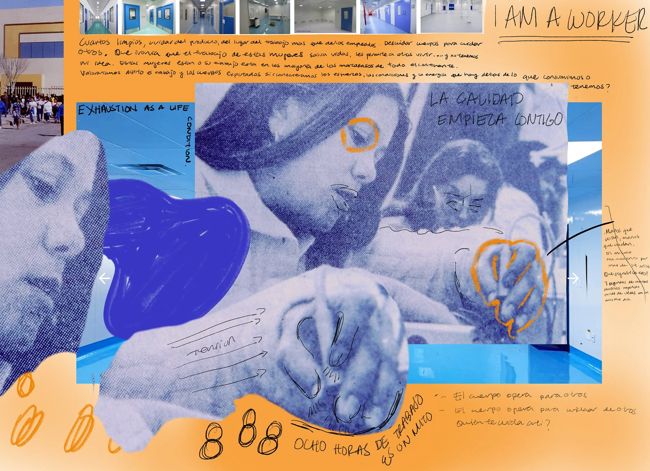 Safety Blue is a performative work that weaves past and present histories regarding women, labor, and oppression, and is articulated by an archive from the 1980’s that documents the working conditions of women in the maquiladoras of the US-Mexico border. The project is motivated by the recognition and recuperation of collective forms of resistance that are enacted from the body, and by the possibility to reorient history and construct new senses of truth.