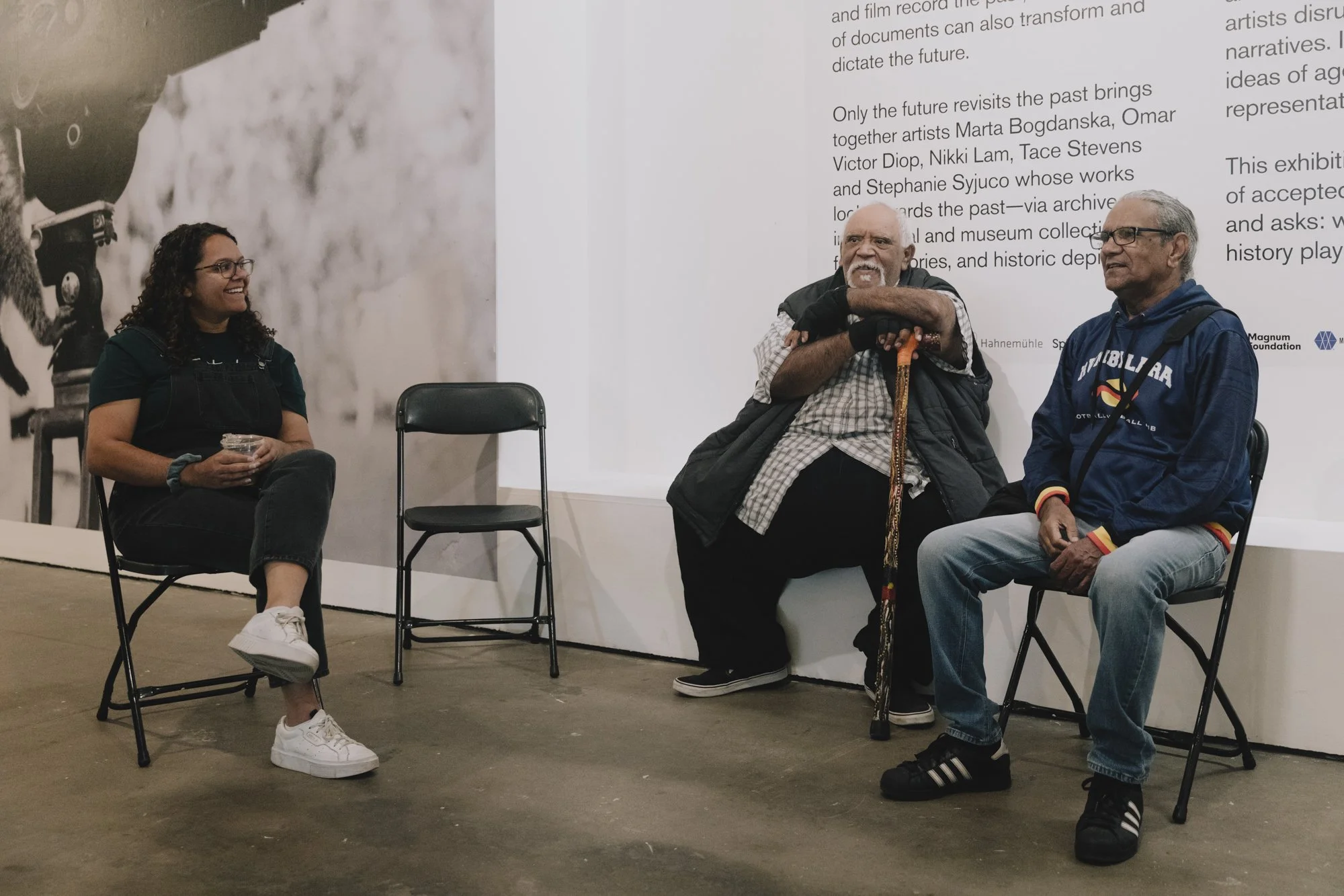 Tace Stevens (left) at a CPP Australia exhibition of her project documenting the experience of Aboriginal elders who survived the Kinchela Boys Home in Australia, as part of our Heritage in Focus collaboration with World Monuments Fund.