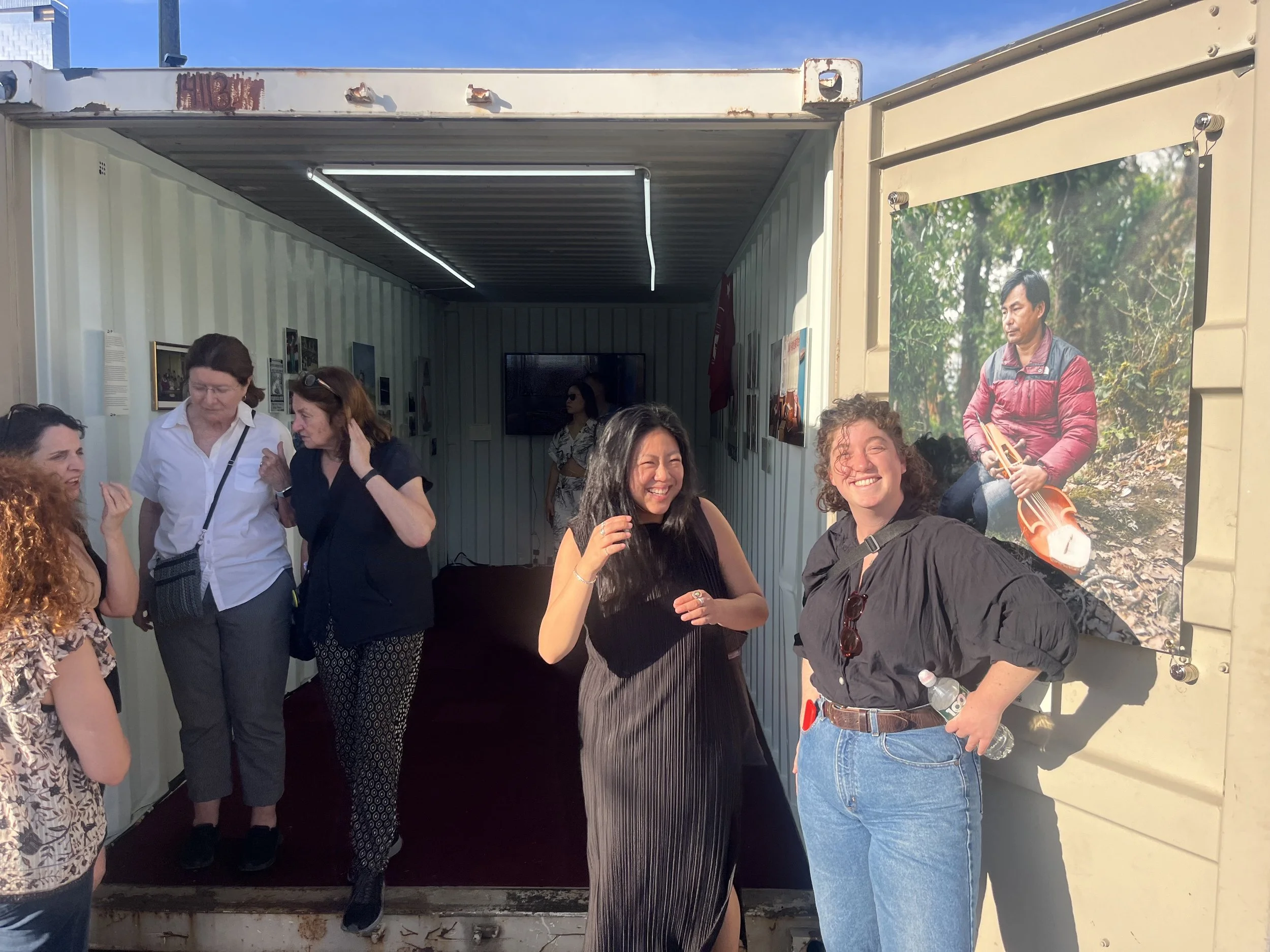 Magnum Foundation team members Tif Ng (left) and Sarah Perlmutter (right) in front of our shipping container exhibition of work by Counter Histories Fellow Prasiit Sthapit at Photoville. Photo by Cheney Orr.