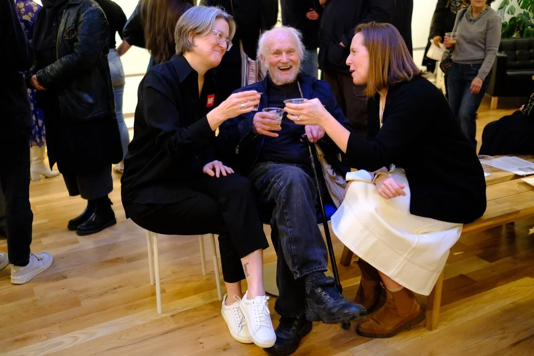 Magnum Foundation Executive Director Kristen Lubben (left) with Josef Koudelka (center) and Aperture Executive Director Sarah Meister (right), at the launch party for the Spring 2024 issue of Aperture magazine, “Counter Histories.” Photo by Destiny Mata.