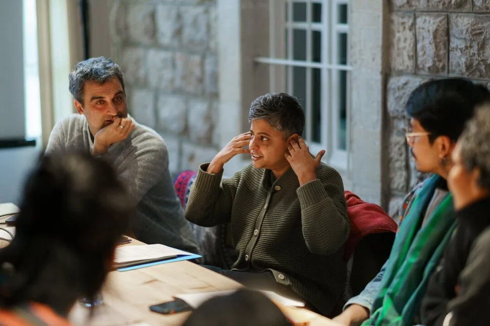 Mentor Nandita Raman (center) speaking to the 2023-24 Heat Fellows at the their January workshop in Amman, Jordan. Photo by Jenna Masoud.
