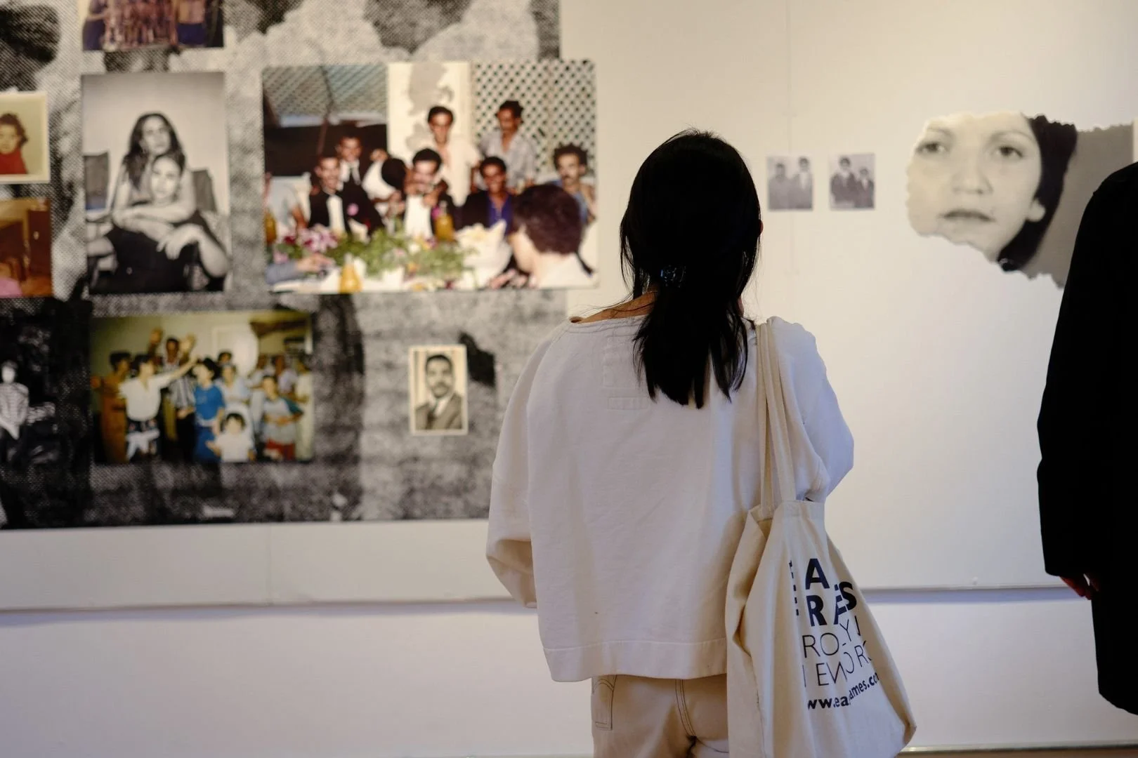 A visitor at our Spring 2024 “Counter Histories” exhibition opening and Aperture magazine launch party at Magnum Foundation. Photo by Destiny Mata.
